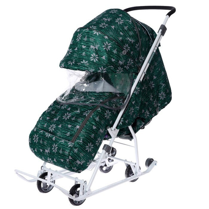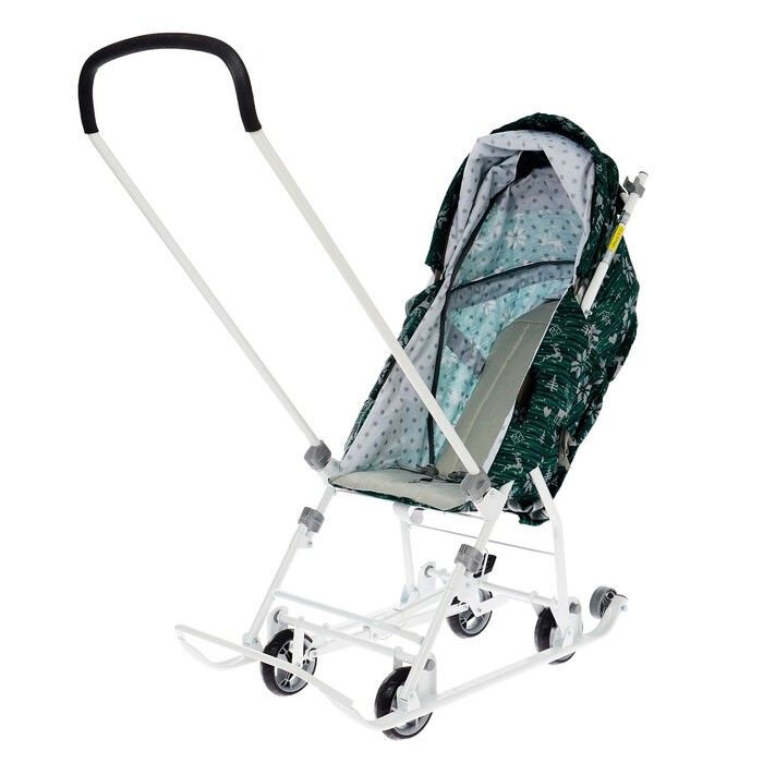 Санки-коляска Наши детки 3-1К/6, с перекидной ручкой, принт Скандинавский зеленый