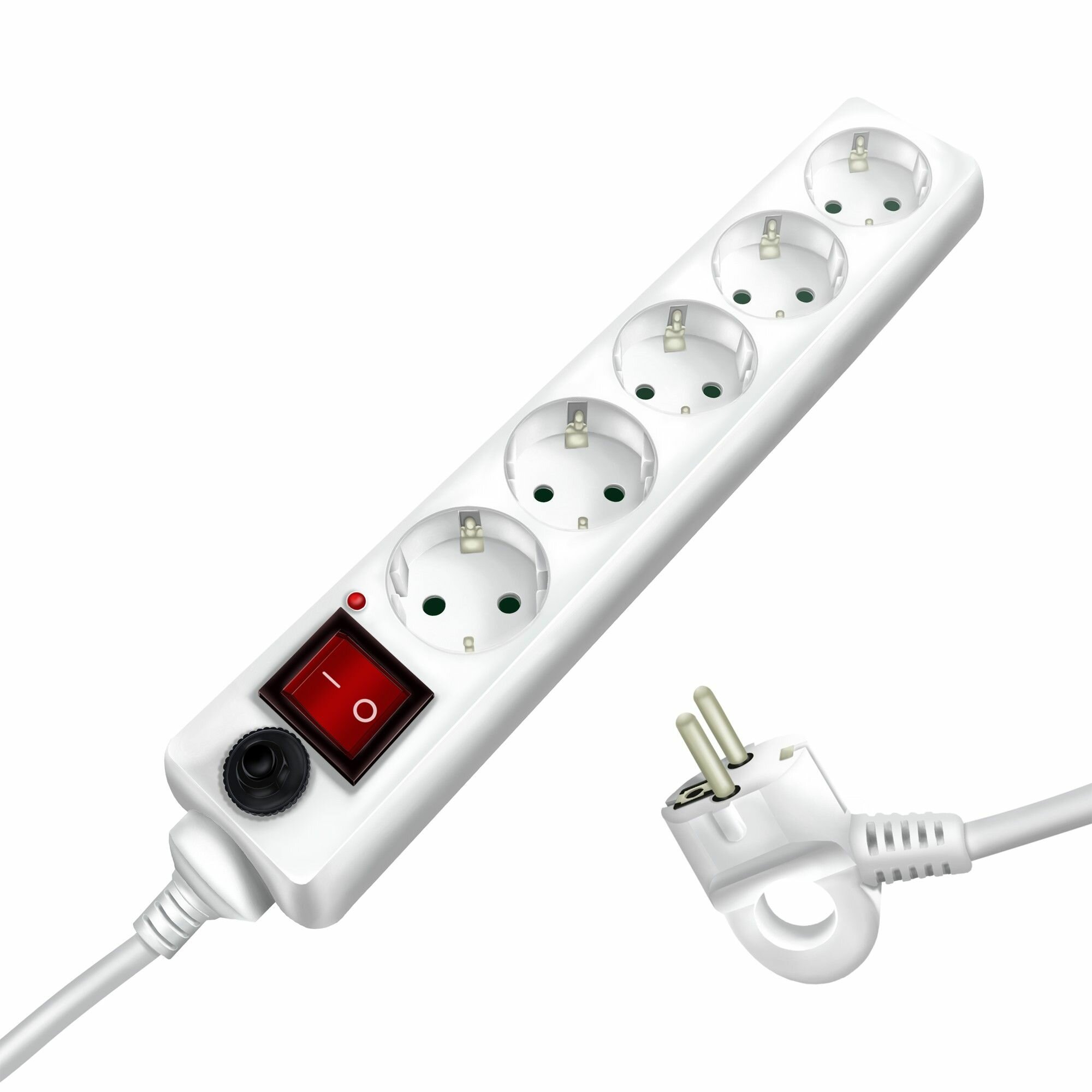 Сетевой фильтр с предохранителем 3м 5 розеток старт удлинитель бытовой с заземлением, защита от перегрузки и короткого замыкания