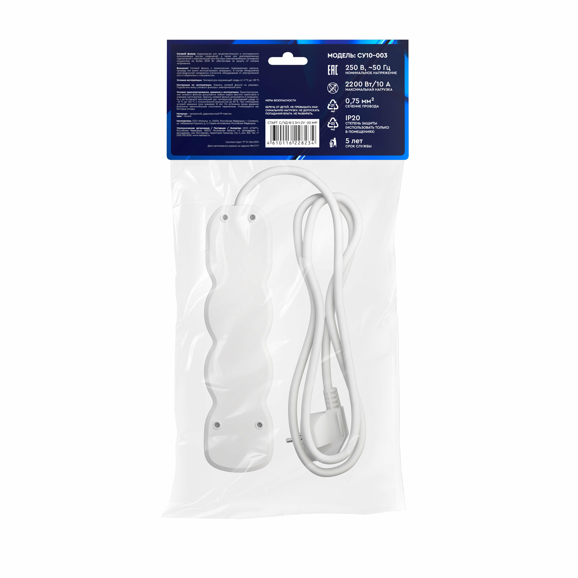 Удлинитель сетевой бытовой 1.5м старт 3 розетки, 10А, ПВС 2х0.75, 2200 Вт