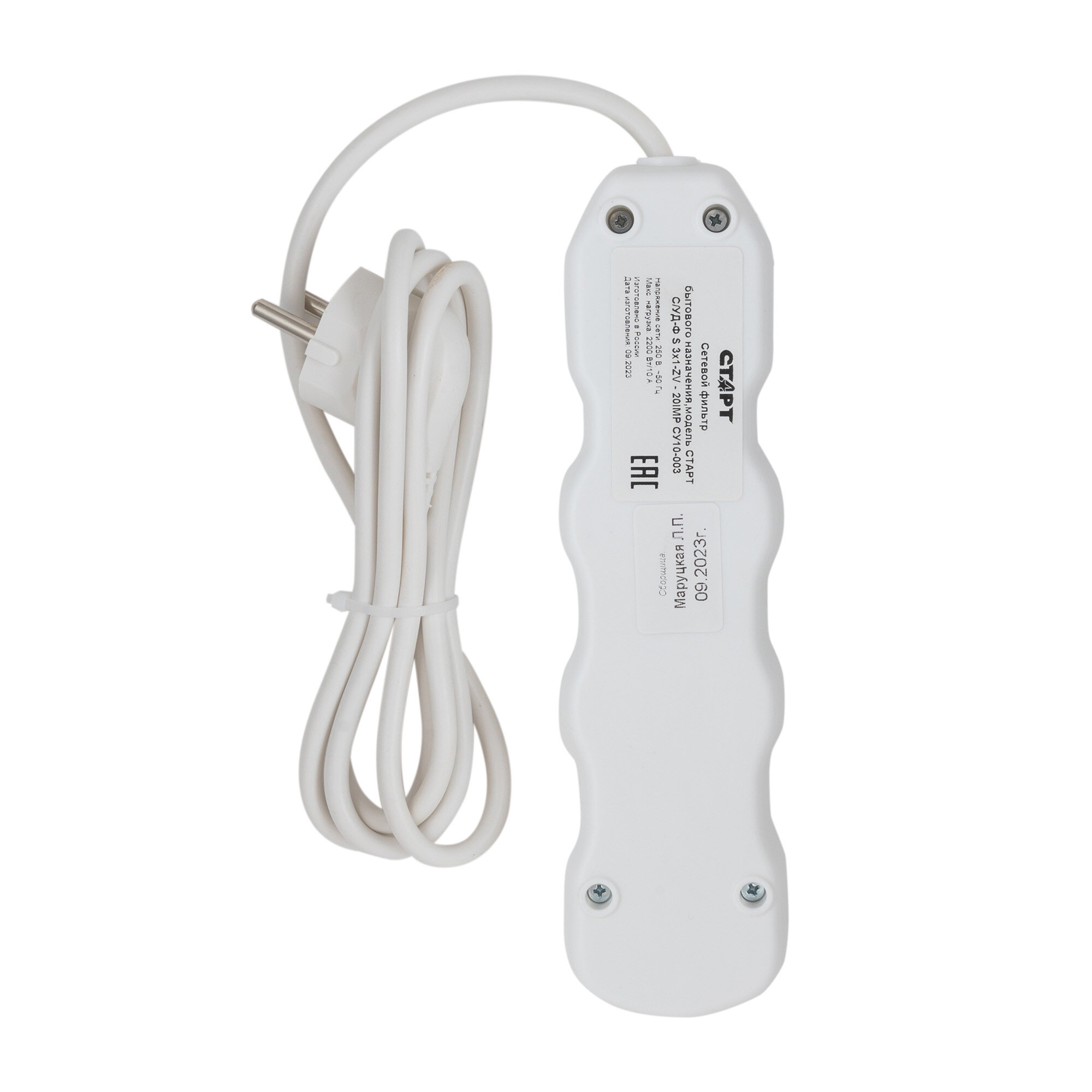 Удлинитель Старт S 3x1, 3 розетки, 1,5 м, белый