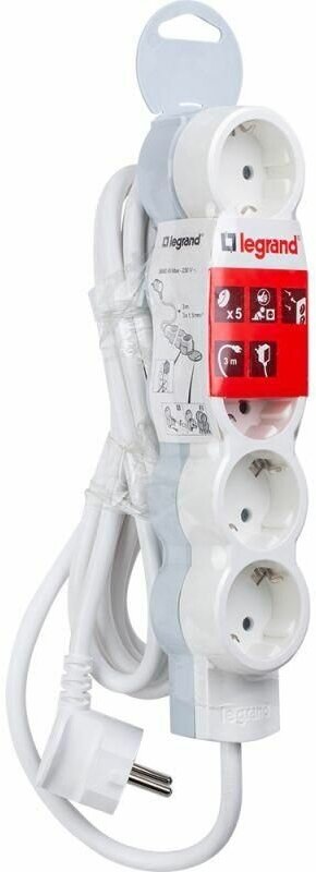 Удлинитель LEGRAND "Стандарт" 5 розетки с/з, шнур 3м, 3500W, возм. фиксации блока, 695012 интересное: