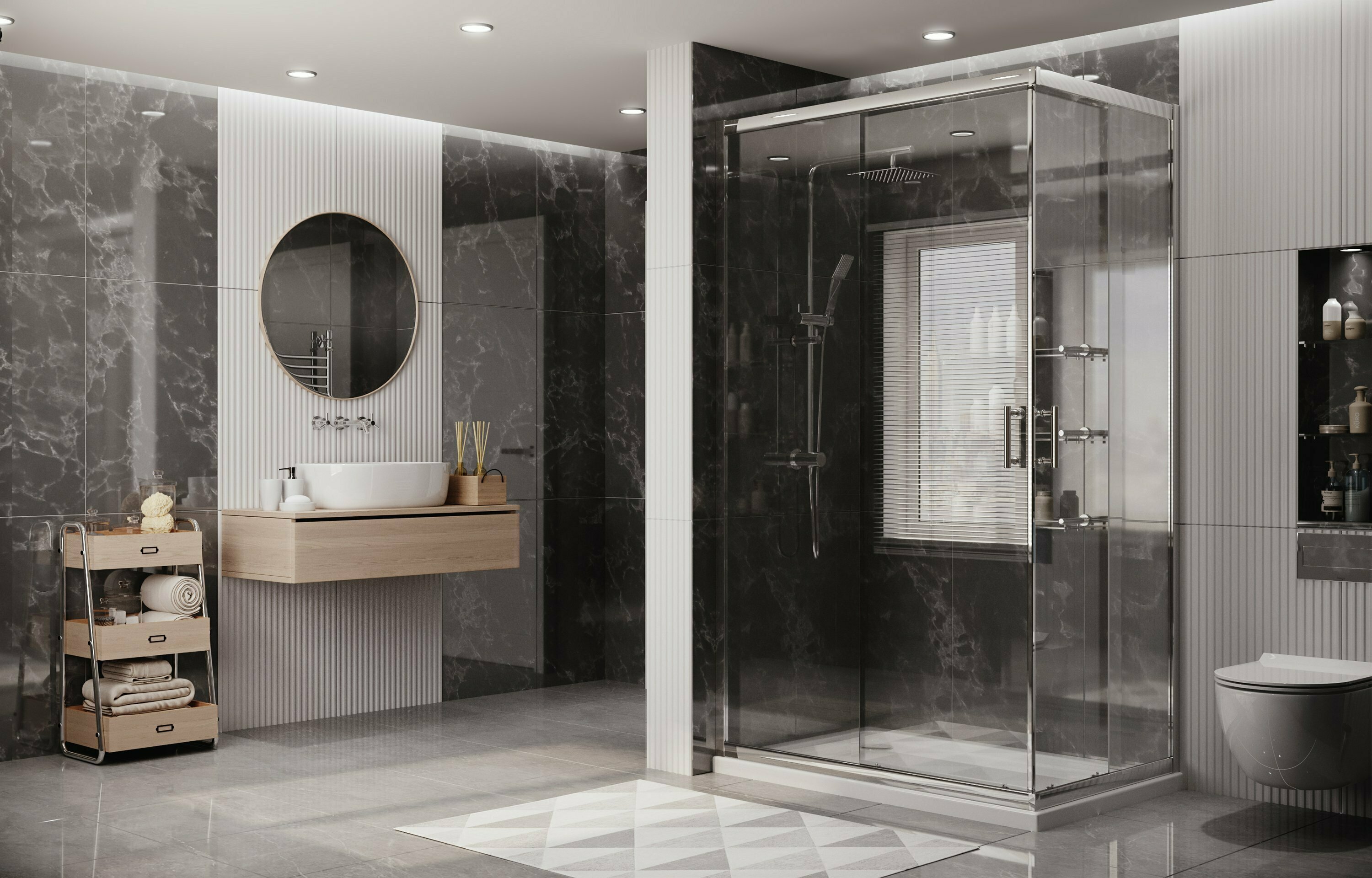 Душевой уголок Vincea city vsr-5ct9011clb, 1100 900, черный, стекло прозрачное vsr-5ct9011clb