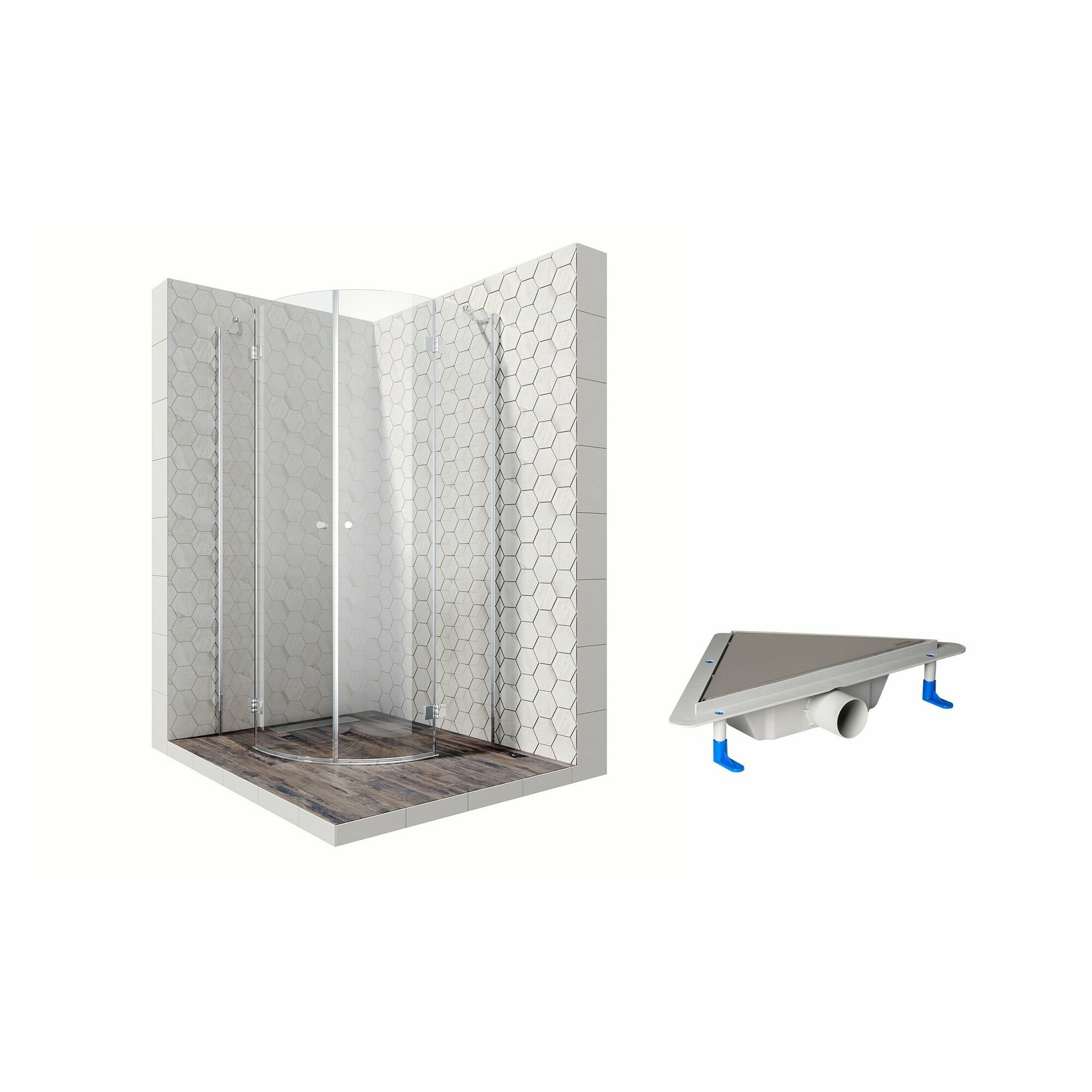 Комплект полукруглого душевого ограждения с угловым трапом Ambassador Diamond 12011101-ST8, с EasyClean, 90 х 90 см