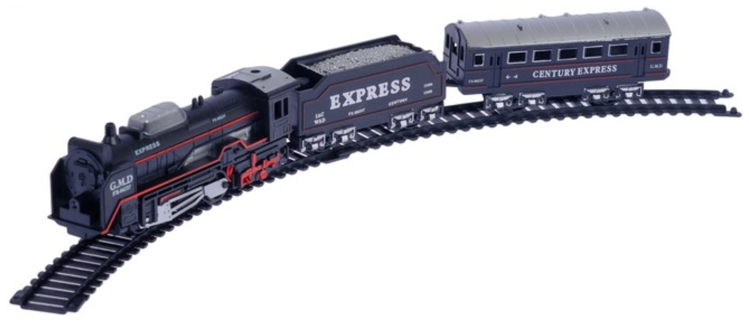 | Подробная комплектация | рельсы 13 элементов, локомотив, вагоны |