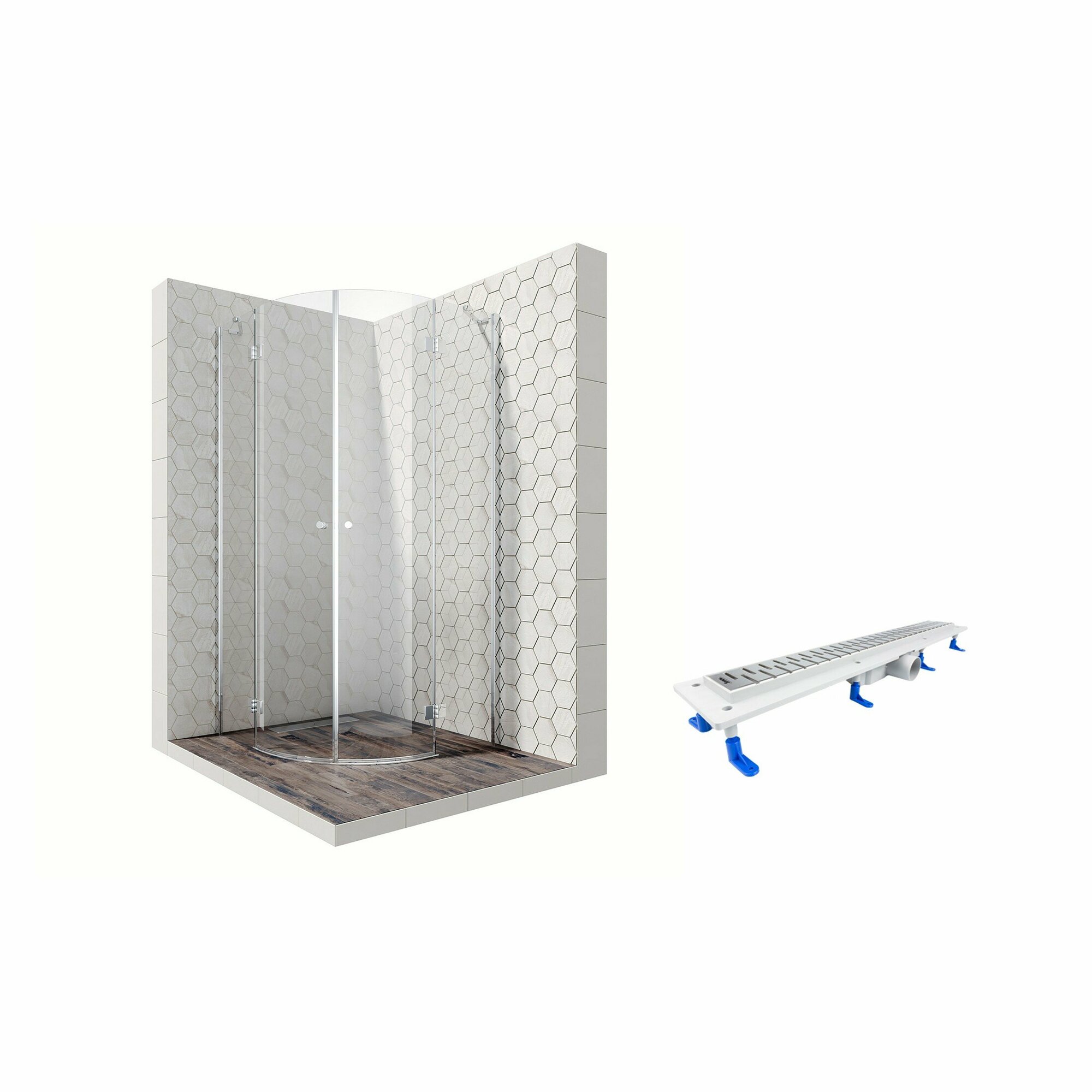 Комплект полукруглого душевого ограждения с линейным трапом Ambassador Diamond 12011101-ST2, с EasyClean, 90 х 90 см