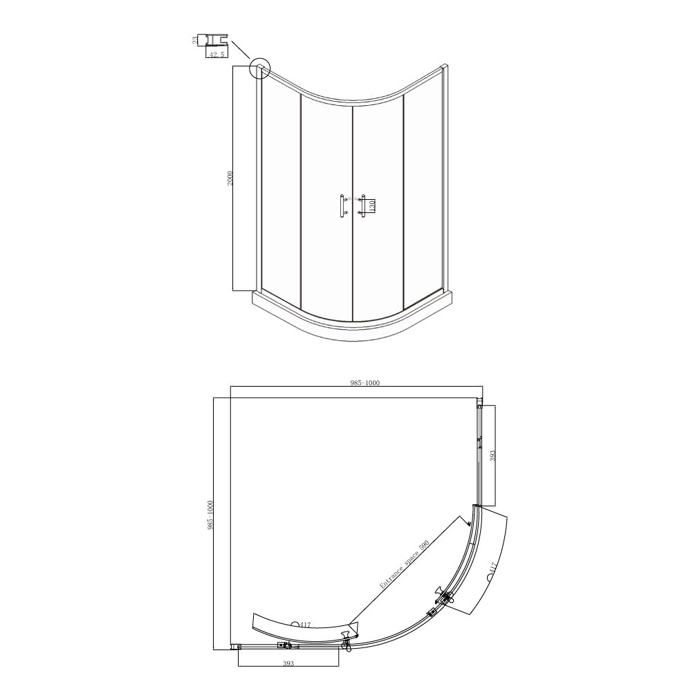 Комплект полукруглого душевого ограждения с линейным трапом Ambassador Kingston 14011104-ST3, с EasyClean, 90 х 90 см