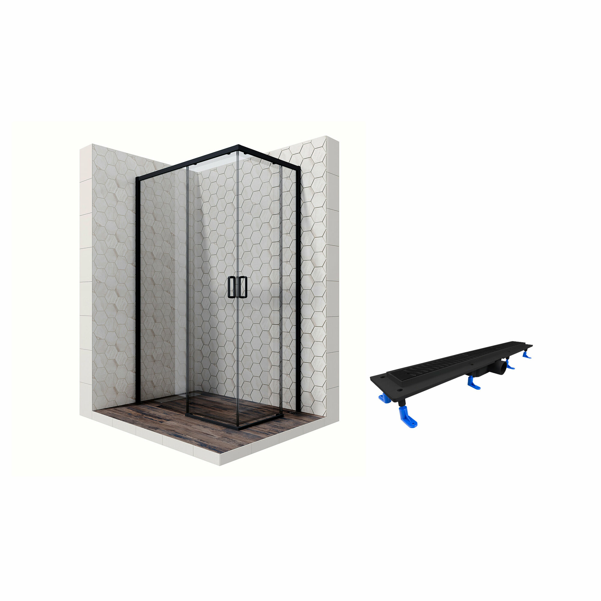 Комплект прямоугольного душевого ограждения с линейным трапом Ambassador Queen Black 11011205R-ST11, с EasyClean, 120 х 80 см