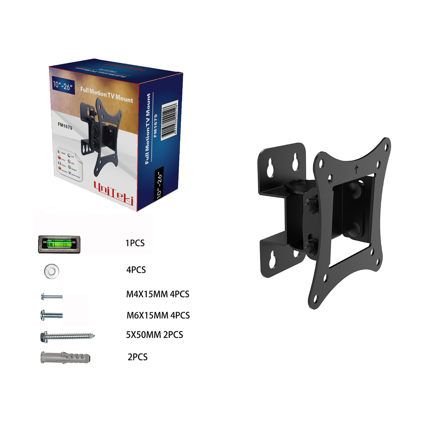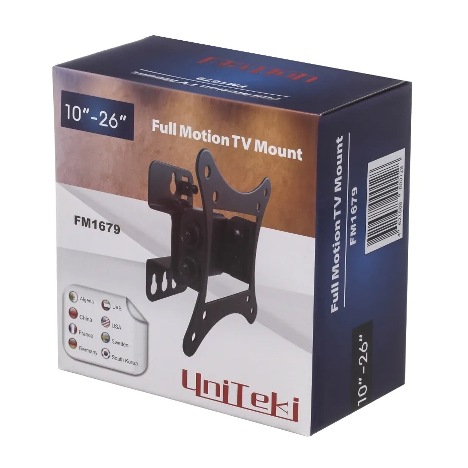 Купить Кронштейн на стену для телевизора или монитора наклонно поворотный для диагонали 10-26 дюймов UniTeki FM1679, черный