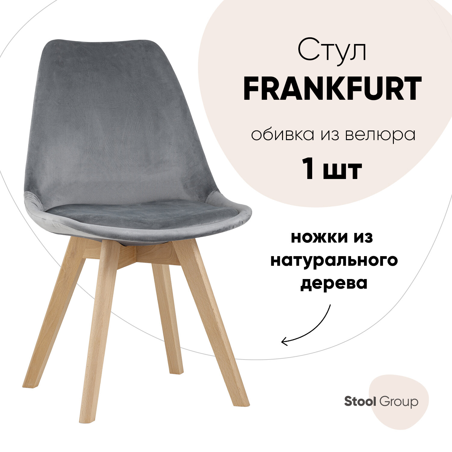 Стул | обеденный FRANKFURT обивка велюр ножки массив бука цвет серый