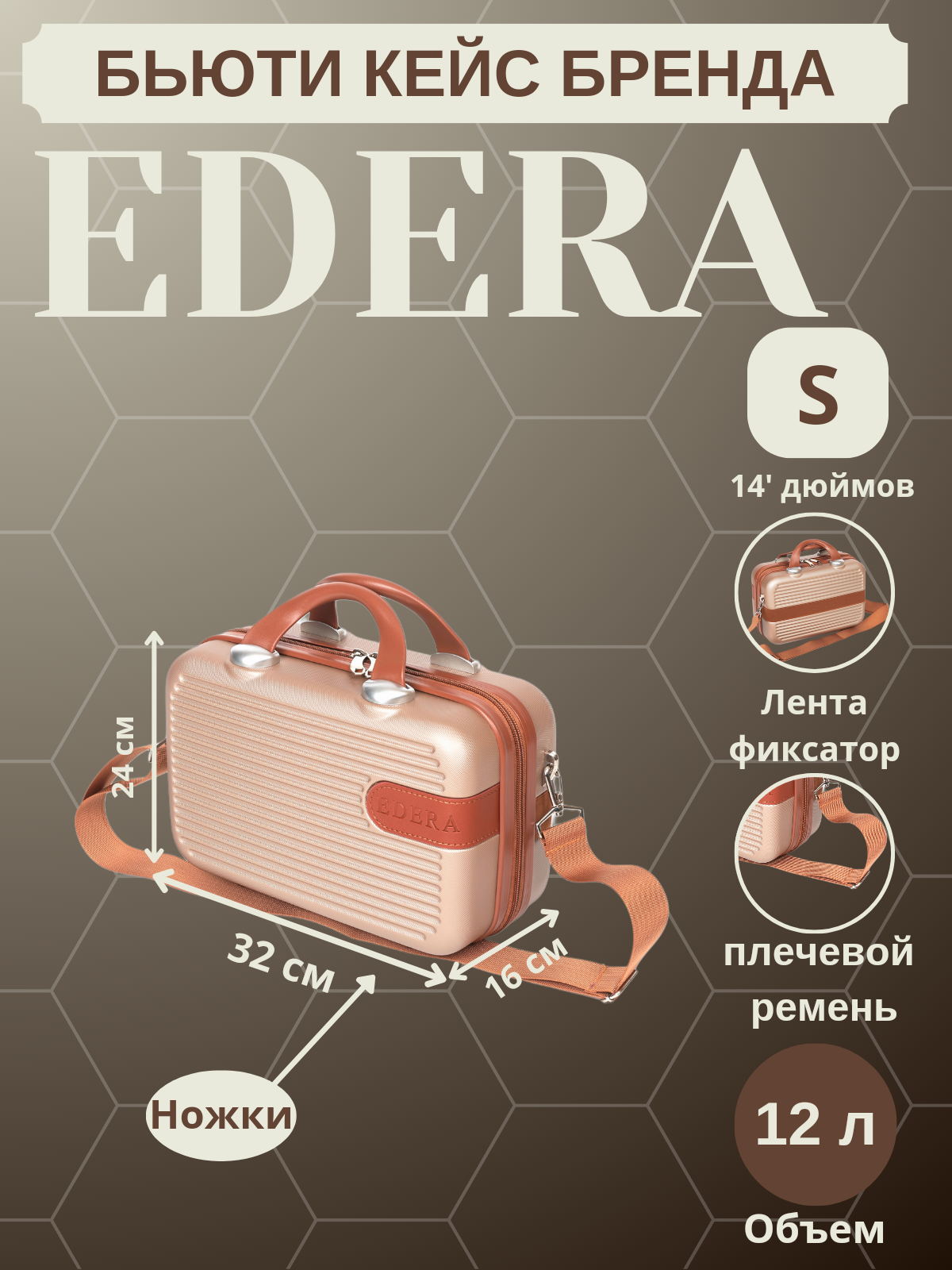 Дорожный Бьюти-кейс EDERA с наплечным ремнем , размер 14`, золотой интересное: