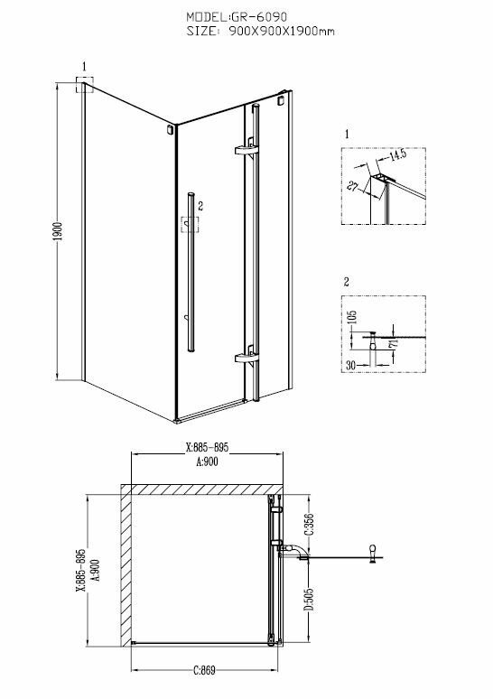 Душевой уголок GROSSMAN GR-6090 Style 90*90*190 квадрат, дверь распашная