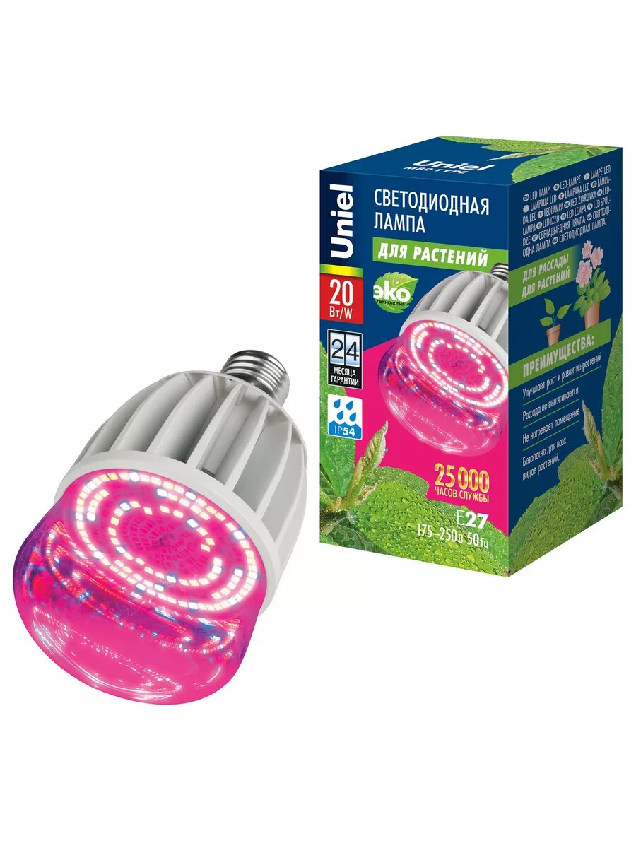 Ниже Вы можете прочитать отзывы на Лампа светодиодная для растений Uniel ALS55WH, E27, M80, 20 Вт, ознакомится с подробными характеристиками, посмотреть интересные обзоры и фотографии на Лампа светодиодная для растений Uniel ALS55WH, E27, M80, 20 Вт.