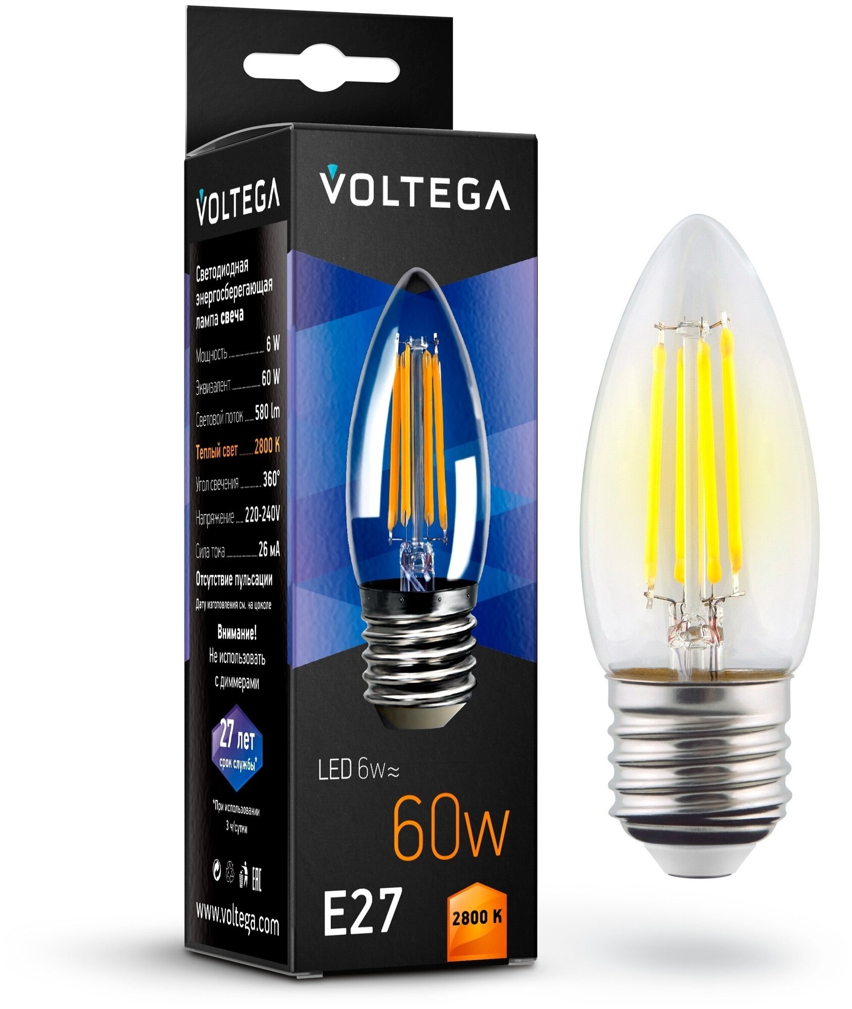 Лампочка светодиодная Voltega Crystal 7046 E27 6Вт 2800К интересное: