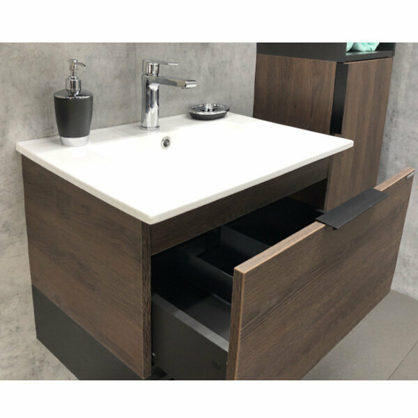 Тумба с раковиной Comforty Франкфурт 60, подвесная, дуб шоколадно-коричневый 00004150530