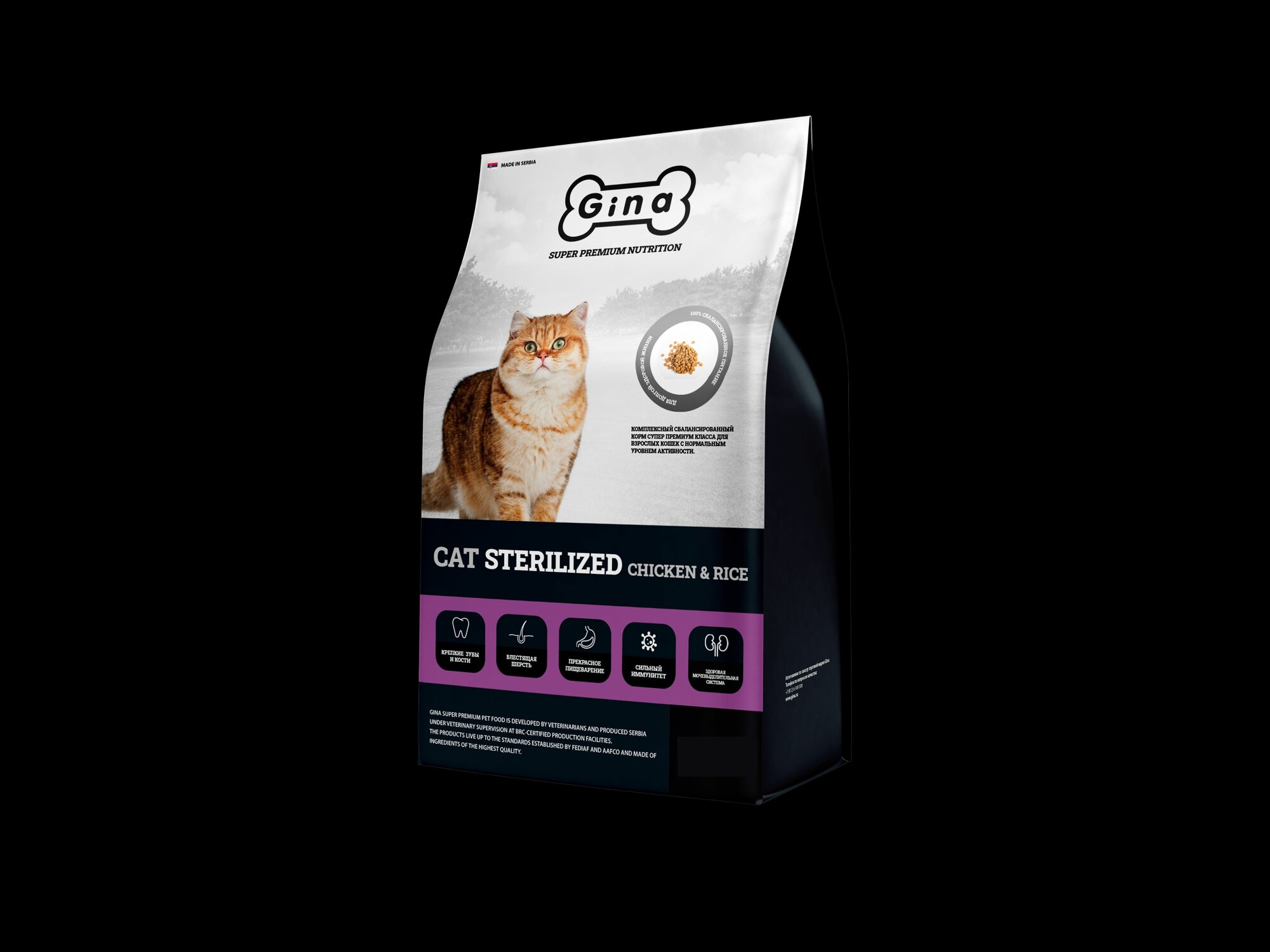 GINA CAT STERILIZED CHICKEN & RICE для взрослых кастрированных котов и стерилизованных кошек с курицей и рисом 01739 (1 кг)