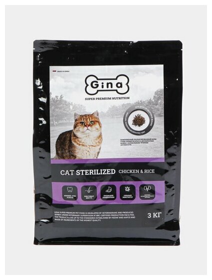 Корм сухой для стерилизованных кошек Gina с курицей и рисом, 3 кг