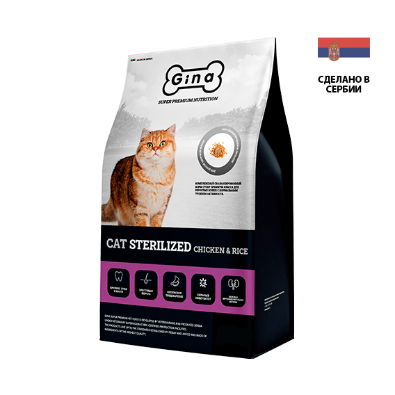 Сухой корм GINA CAT STERILIZED CHIKEN & RICE с курицей и рисом для стерилизованных кошек, 7,5кг