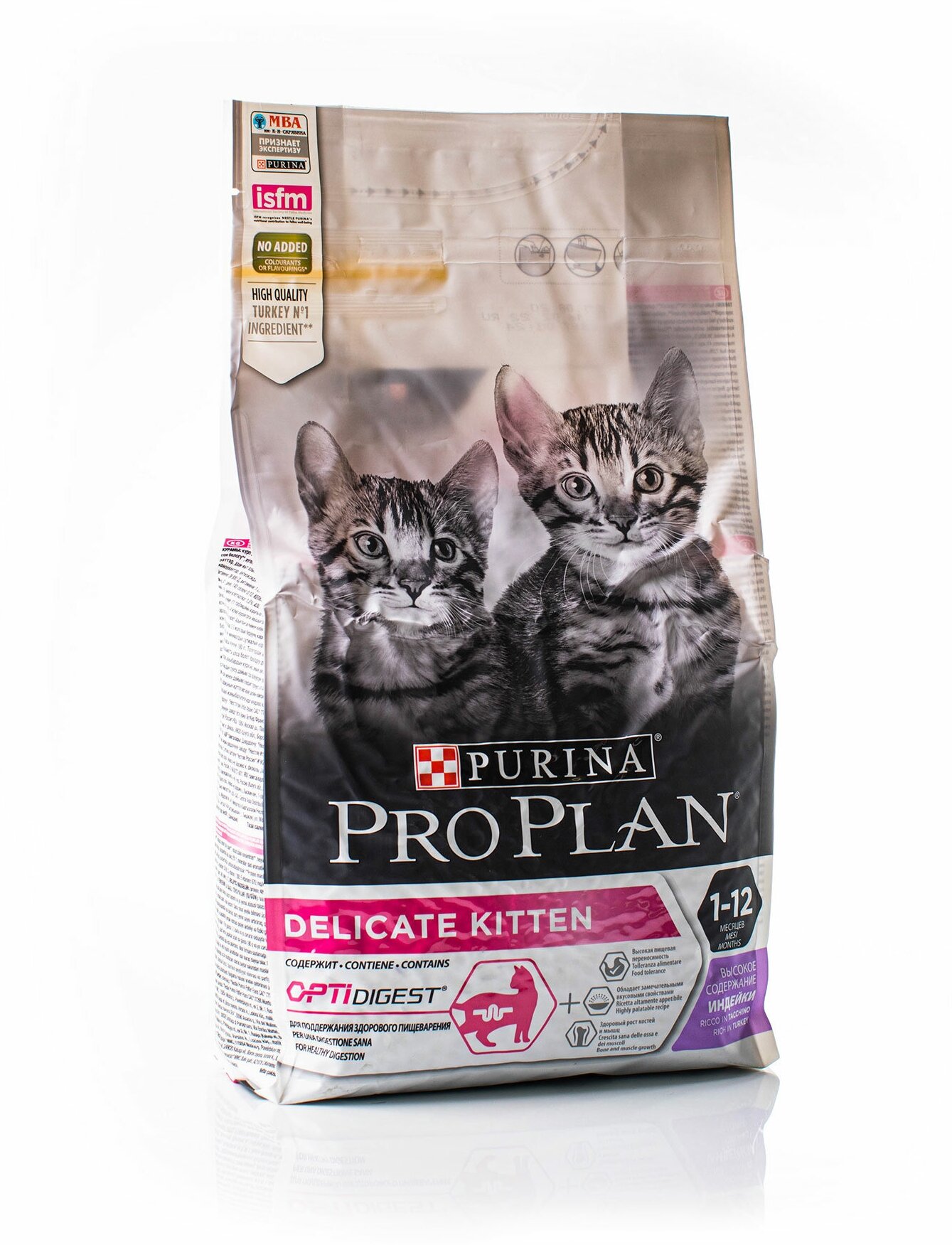 Купить Pro Plan Delicate OptiDigest сухой корм для котят с чувствительным пищеварением или особыми предпочтениями в еде, с индейкой 1,5кг