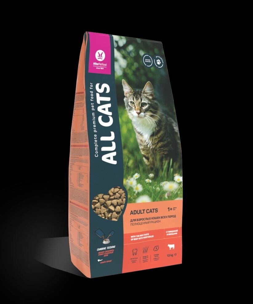 Корм сухой All Cats для взрослых кошек, с говядиной и овощами, 13 кг