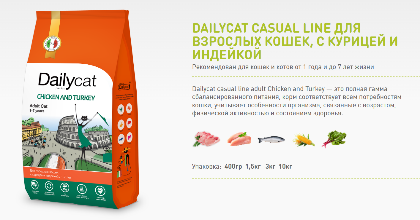 DailyCat Casual Line Adult Chicken&Turkey Сухой корм для кошек Курица/Индейка 1.5кг интересное: