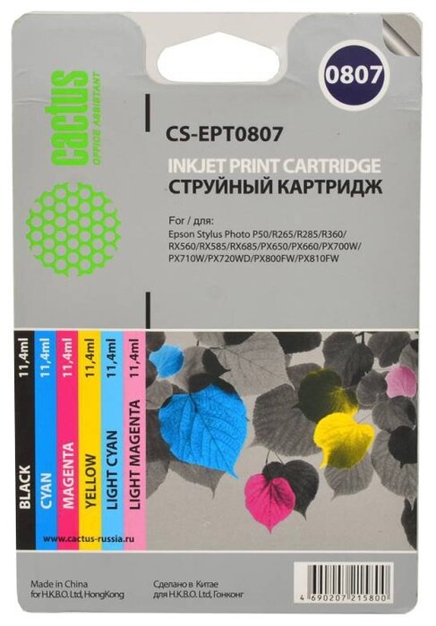 Картридж CACTUS CS-EPT0807, черный / желтый / голубой / пурпурный / светло-голубой / светло-пурпурный / CS-EPT0807