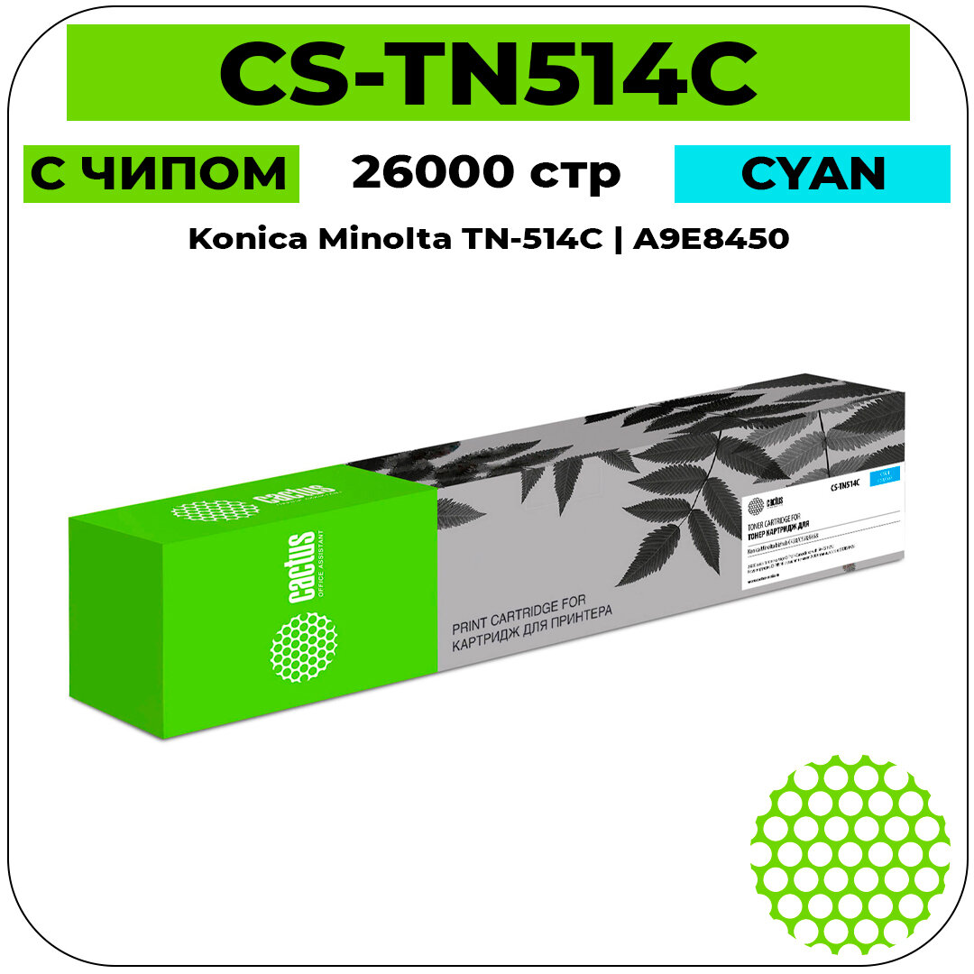 Купить Картридж лазерный Cactus CS-TN514C TN-514C голубой (26000 страниц) для Konica Minolta bizhub C458/C558/C658