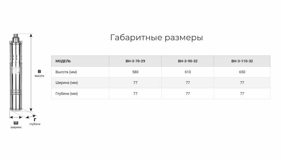 Насос скважной Jemix ВН-3-70-29 (диаметр 77 мм, кабель 20 м)