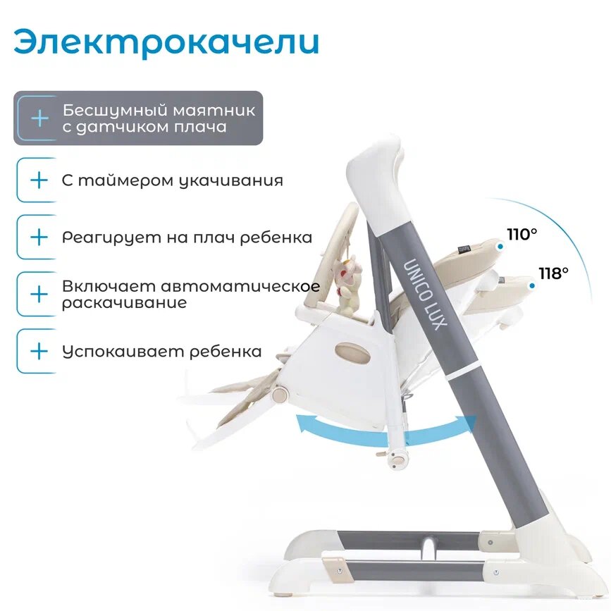 Стульчик для кормления детский с электронным устройством качения Nuovita Unico lux Bianco (Grigio, Bianco/Серый, Белый)
