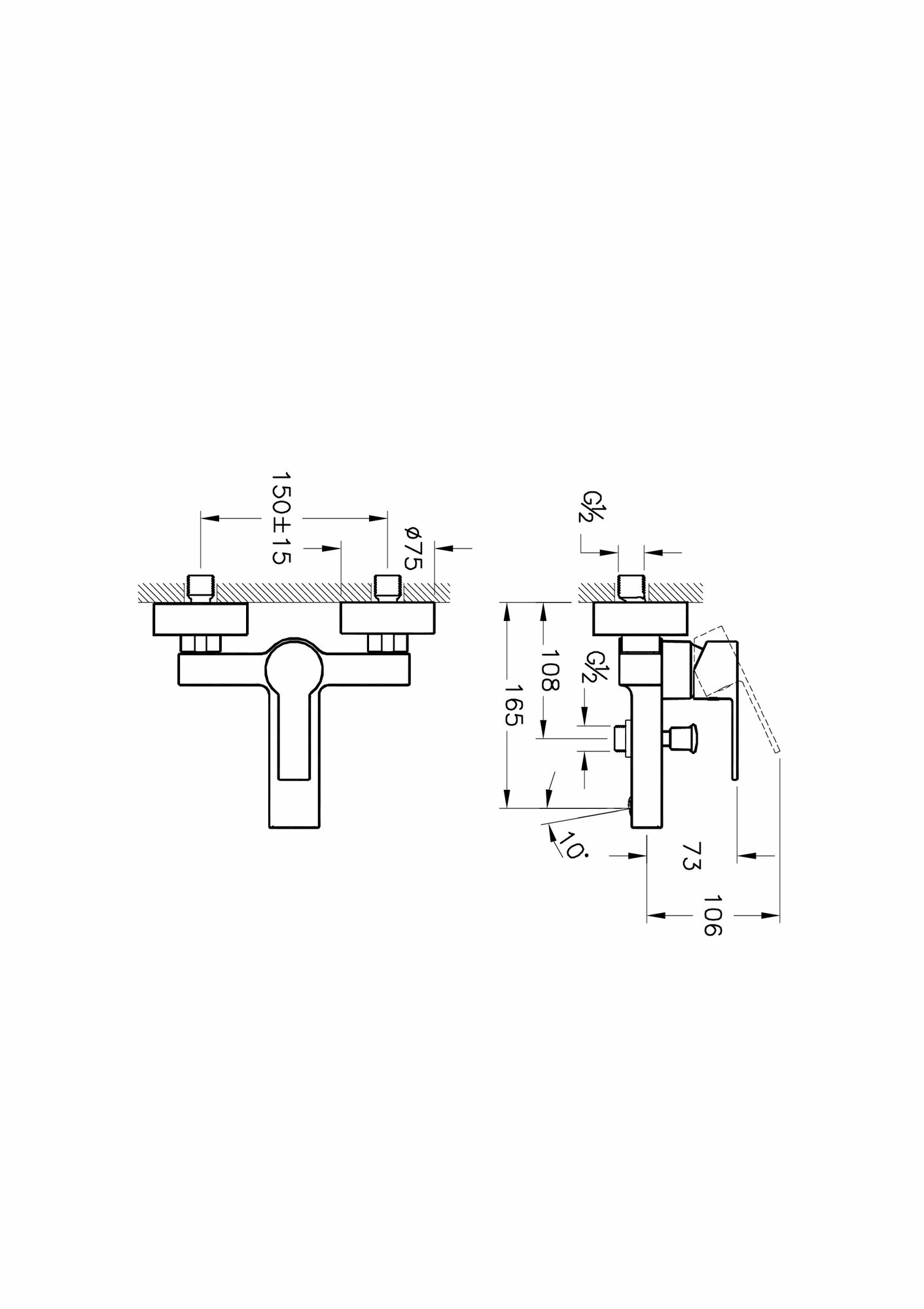 Flo S, настенный смеситель, неповоротный излив, с выходом на душ (без лейки), картридж с регулятором расхода и температуры, арт. A41937EXP, Vitra