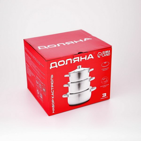 Набор кастрюль из нержавеющей стали Доляна «Сильве», 3 предмета: 2,3 л, 3,2 л, 4,2 л, крышки