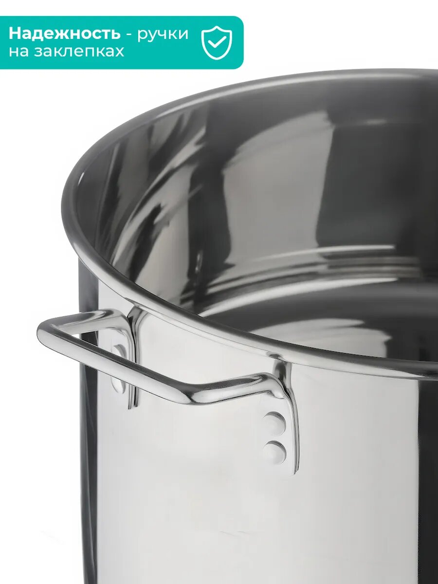 Кастрюля «Общепит», 12 л, d=35 см, металлическая крышка, капсульное дно, цвет хромированный