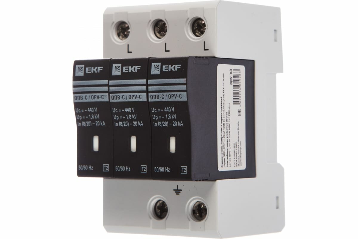 Ограничитель импульсных напряжений ОПВ-C/3P In 20кА 400В PROxima арт. opv-c3 EKF ( 1шт. )