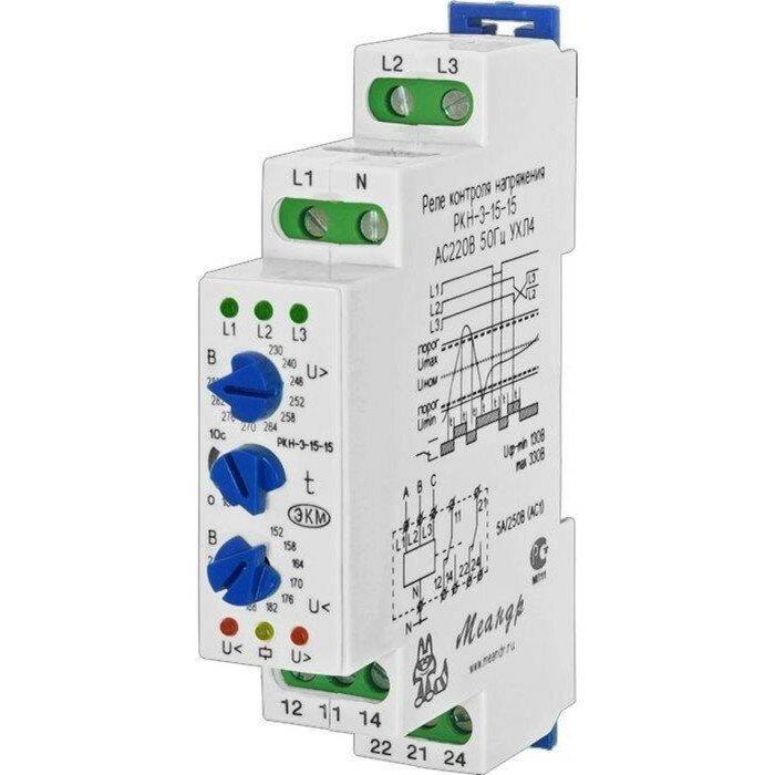 Меандр Реле контроля трехфазного напр.РКН-3-15-15 АС230В/АС400В УХЛ4