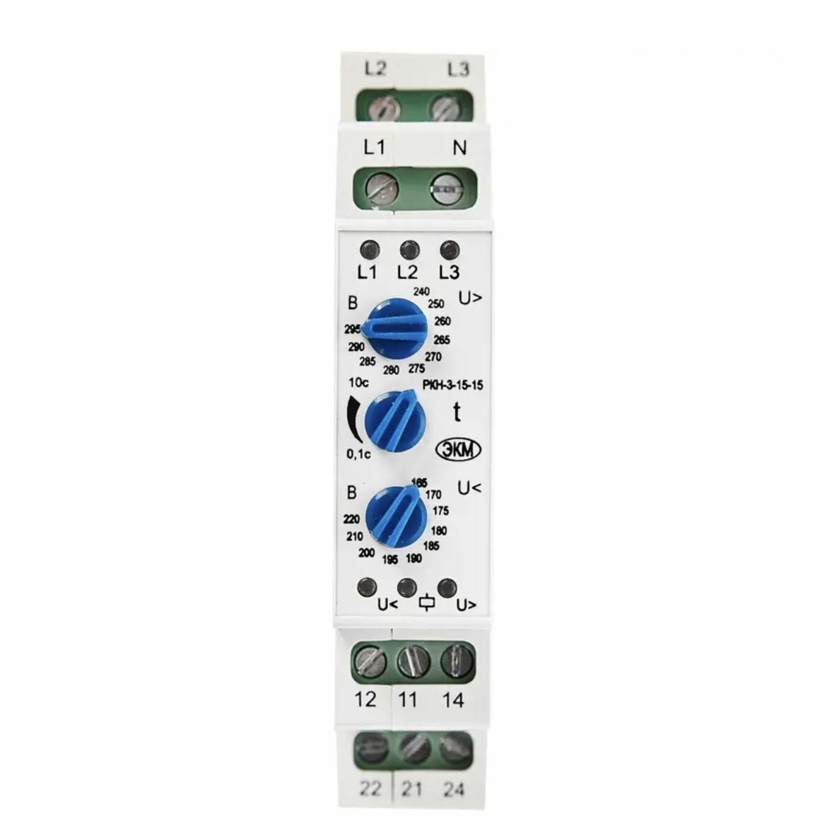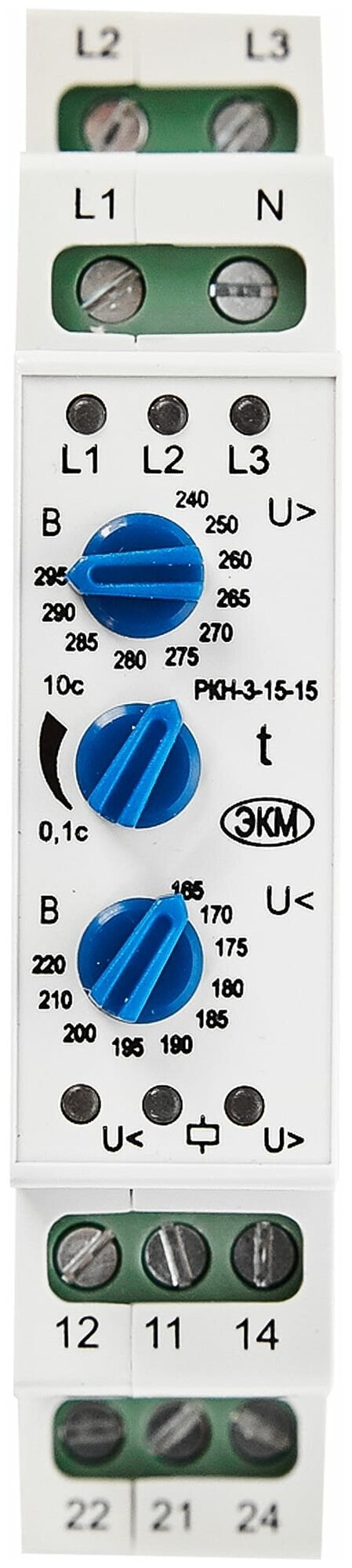 Реле контроля напряжения 3ф РКН-3-15-15 УХЛ4 AC 230В/AC 400В 4-х проводная схема включения задержка срабатывания 0.1...10с ток контактов исполнит. ре