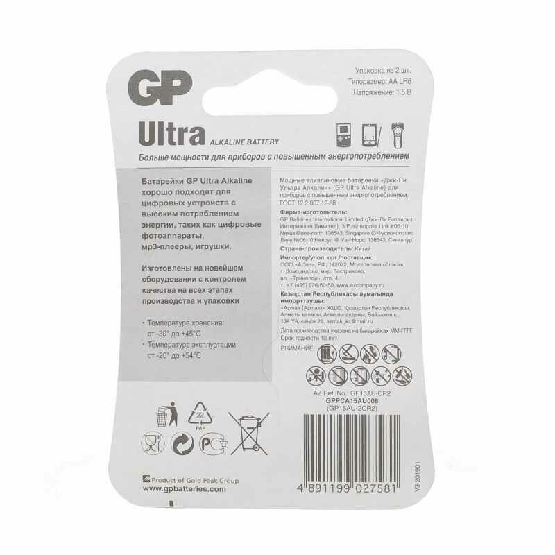 Батарейка GP Ultra AA/LR6/15AU алкалин. бл/2 интересное: