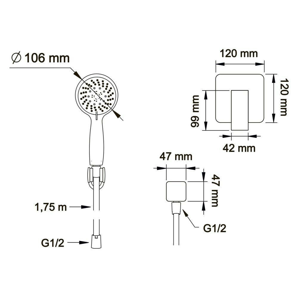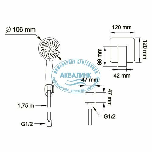 | Комплектация | вентиль / держатель лейки / лейка / настенный держатель / ручной душ / шланг |