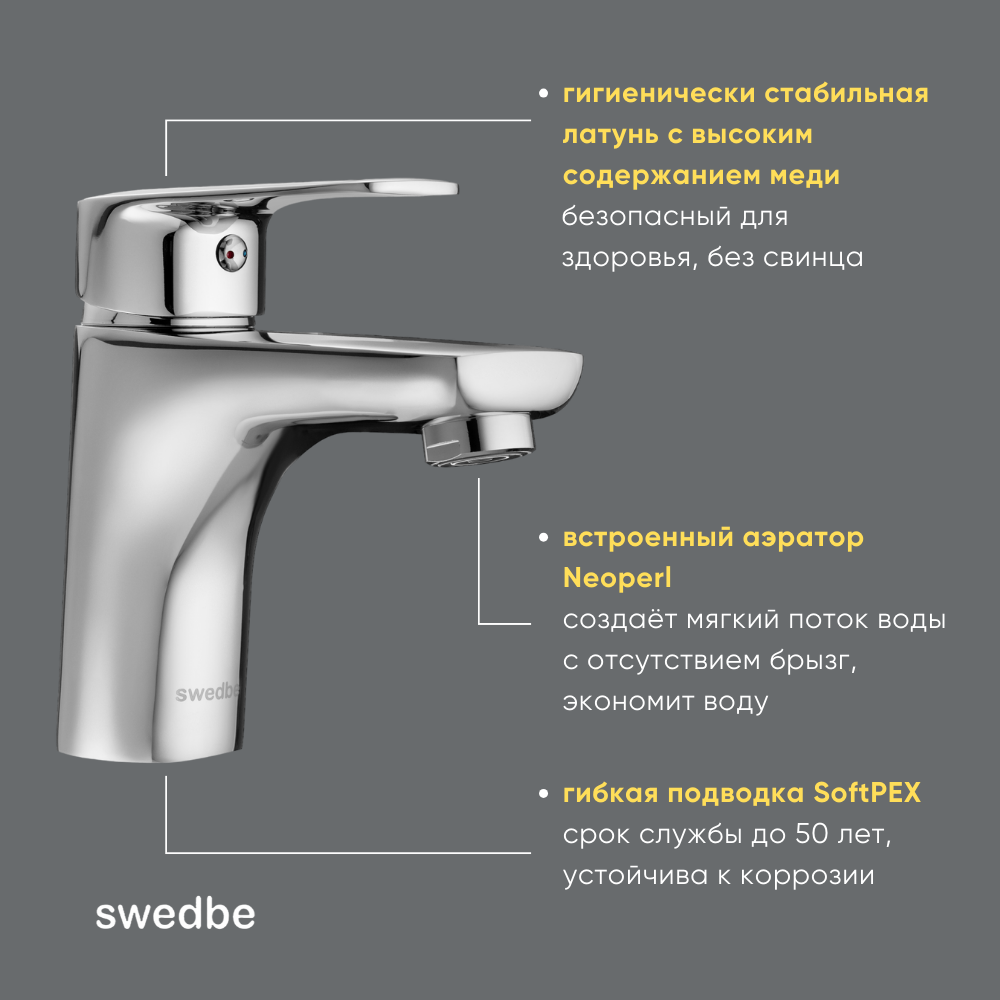 Смеситель Swedbe Mars для умывальника однорычажный, хром 1710 интересное: