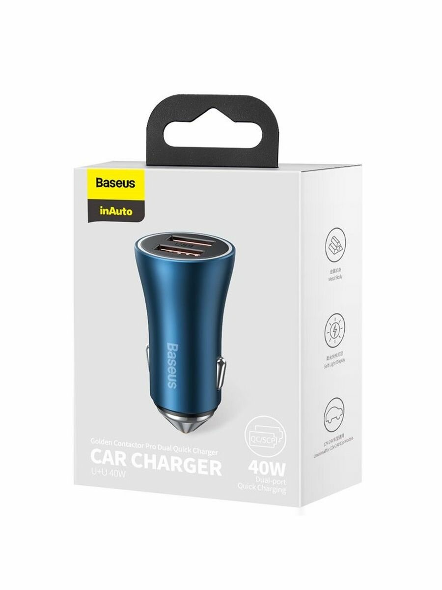 Автомобильная зарядка Baseus Golden Contactor Pro Dual Quick Charger Car Charger U+U 40W (CCJD-A0G, CCJD-A03) (blue)