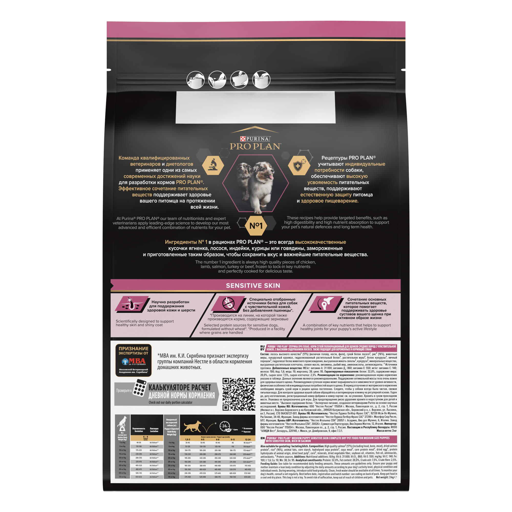 Сухой корм Pro Plan для щенков средних пород с чувствительной кожей, с высоким содержанием лосося, 3 кг