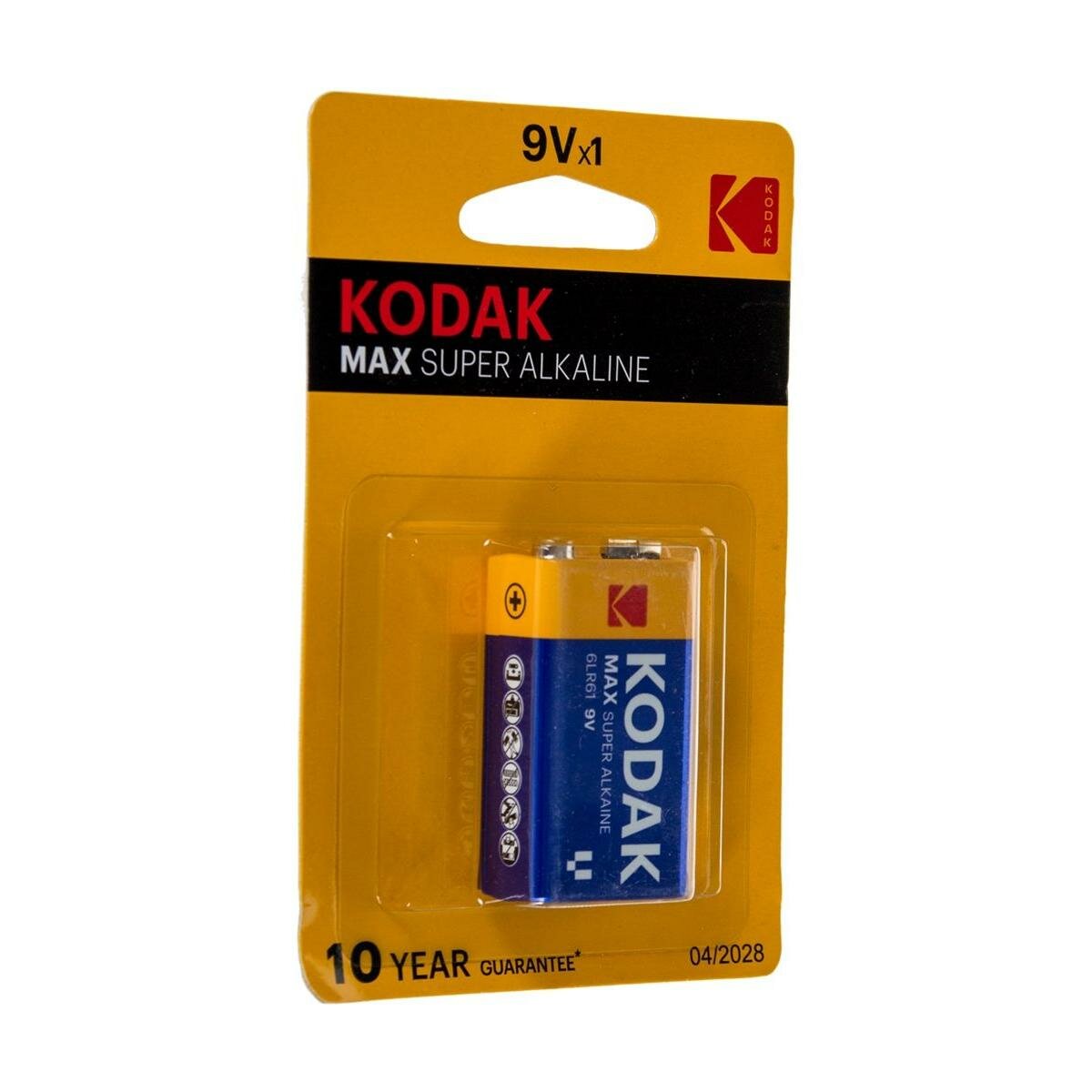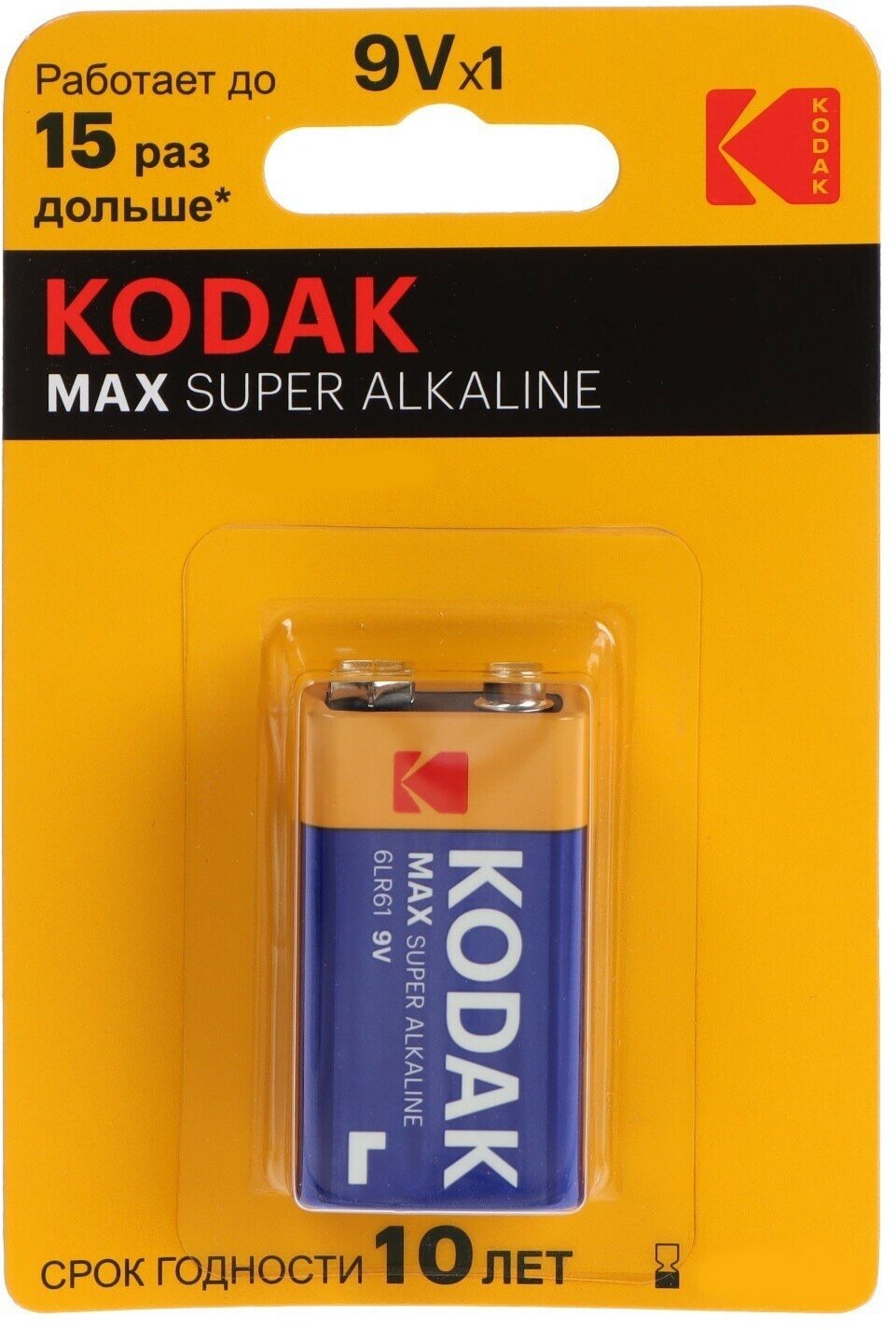Батарейка алкалиновая 1 шт. KODAK Max Super Alkaline, Крона 9V (6LR61, 6LF22, 1604A), блистер, Б0005130