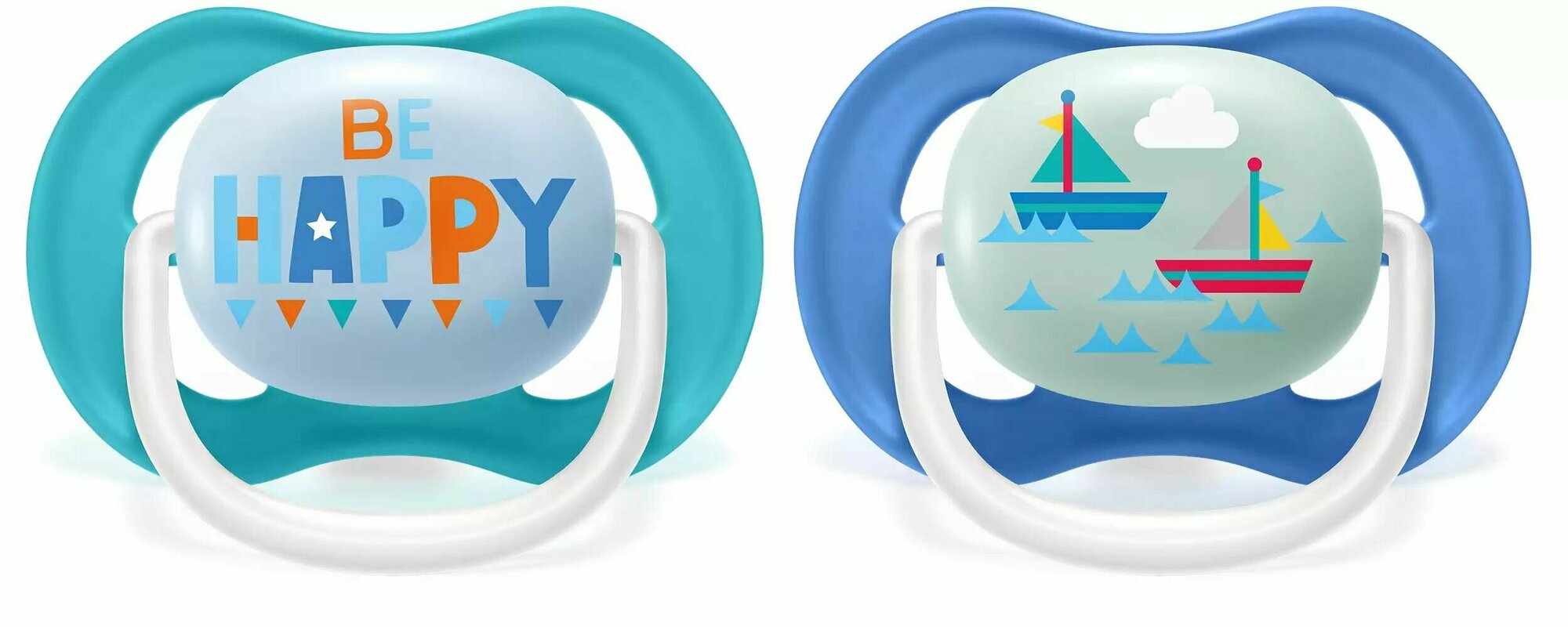 Пустышка ultra air Lime, Be happy/Кораблик, 6-18 мес, 2 шт, для мальчиков