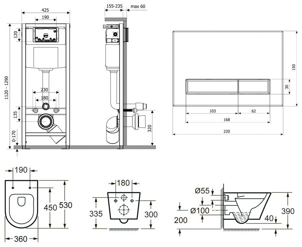 | Комплектация | бачок / звукоизоляционный комплект / инсталляция / монтажная рама / монтажный набор креплений / панель смыва / сиденье |