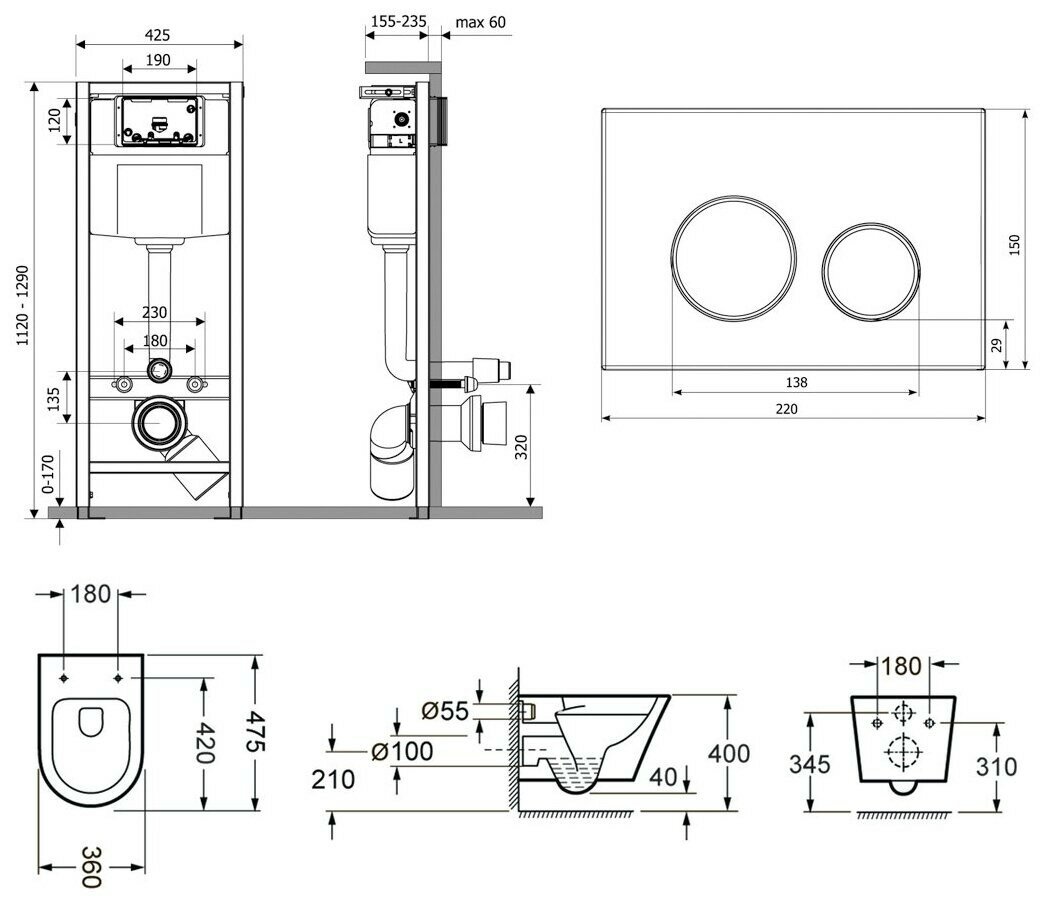 Подвесной унитаз комплект 6 в 1 Lavinia Boho Biore Compacto Rimless 75110148: унитаз, сиденье микролифт, инсталляция, кнопка, шумоизоляция