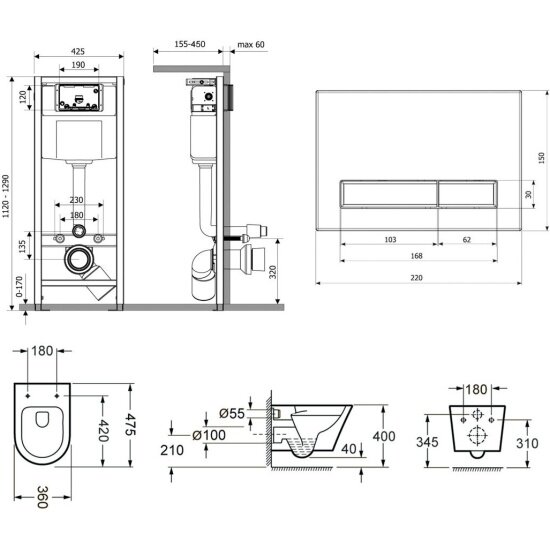 Подвесной унитаз комплект 6 в 1 Lavinia Boho Biore Compacto Rimless 77050170: унитаз, сиденье микролифт, инсталляция, кнопка, шумоизоляция