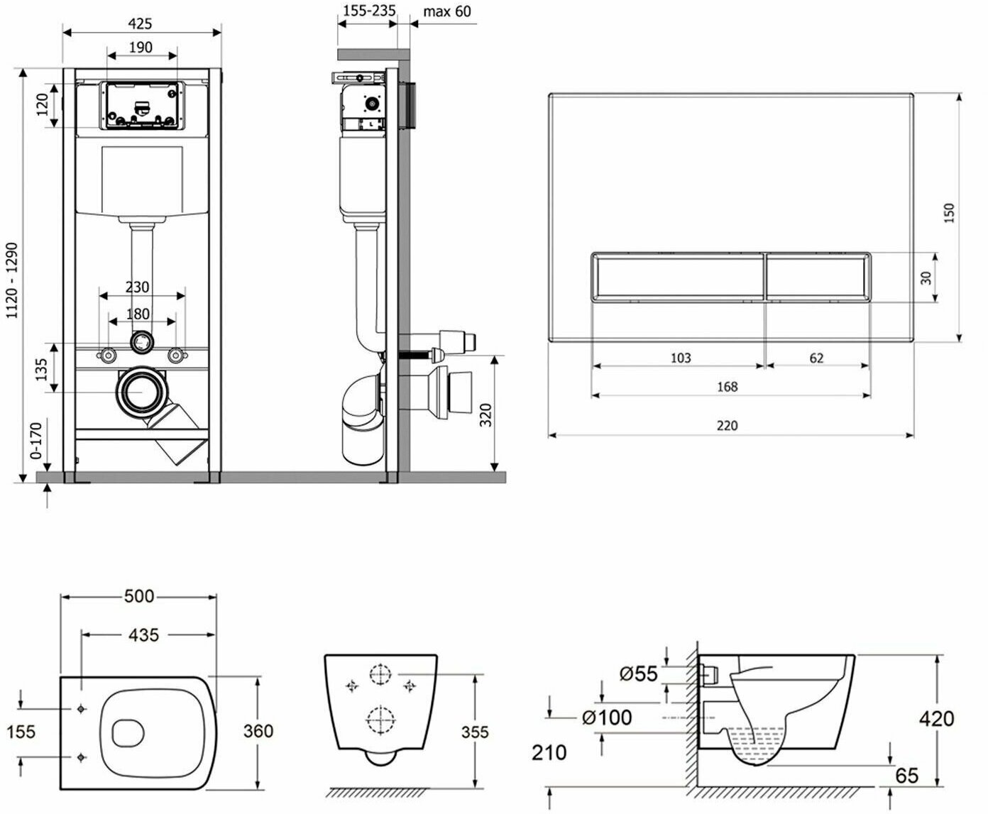 Купить Подвесной унитаз комплект 6 в 1 Lavinia Boho Aveo Rimless 77040130: унитаз, сиденье микролифт, инсталляция, кнопка, шумоизоляция