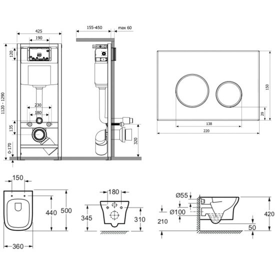 Подвесной унитаз комплект 6 в 1 Lavinia Boho Bristol Rimless 77050201: унитаз, сиденье микролифт, инсталляция, кнопка, шумоизоляция