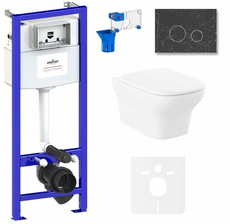 Подвесной унитаз комплект 7 в 1 Lavinia Boho Bristol Rimless 75110237: унитаз, сиденье микролифт, инсталляция, кнопка, шумоизоляция, диспенсер