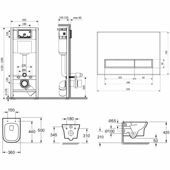 Подвесной унитаз комплект 6 в 1 Lavinia Boho Bristol Rimless 77050201: унитаз, сиденье микролифт, инсталляция, кнопка, шумоизоляция