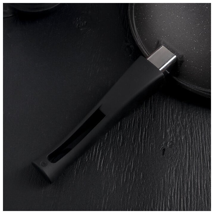 Сковорода вок Гранит со стеклянной крышкой и съемной ручкой антипригарное покрытие алюминий черный диаметр 28см объем 3.5л / сковородка для газовых и
