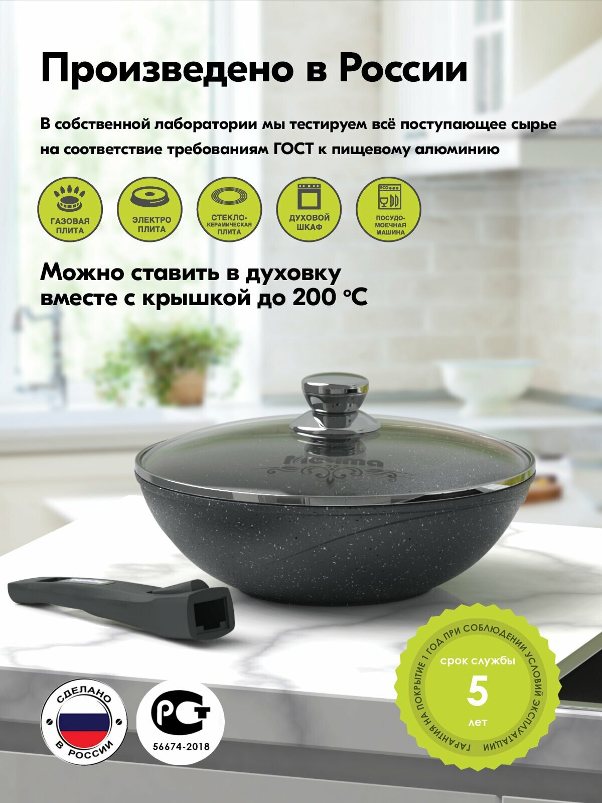 СохранитьСковорода ВОК 28см Гранит со съемной ручкой и стеклянной крышкой арт. с078701 интересное: